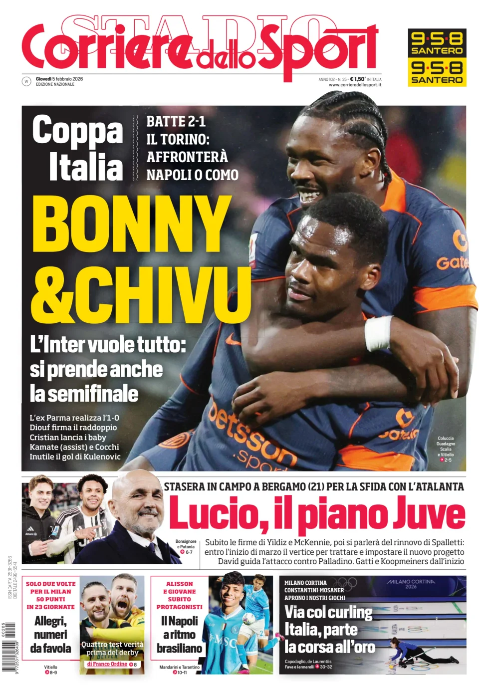 RASSEGNA STAMPA SPORTIVA - Prime pagine dei quotidiani del 5 febbraio 2026