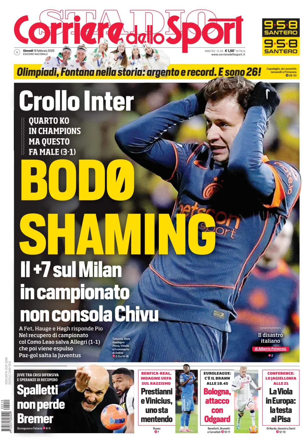 RASSEGNA STAMPA SPORTIVA - Prime pagine dei quotidiani del 19 febbraio 2026