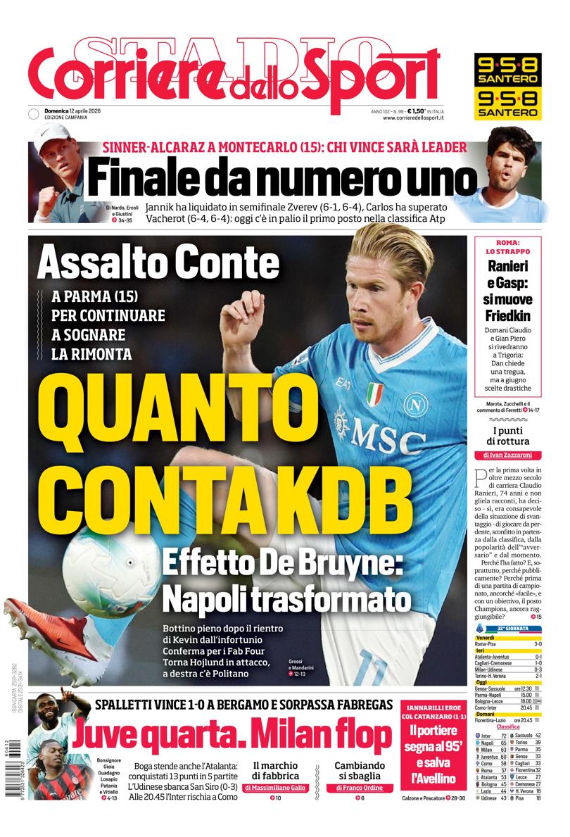 Qui di seguito vi riportiamo la prima pagina dell'edizione Campania del quotidiano 'Il Corriere dello Sport' che troverete in edicola il giorno 12 aprile 2026.