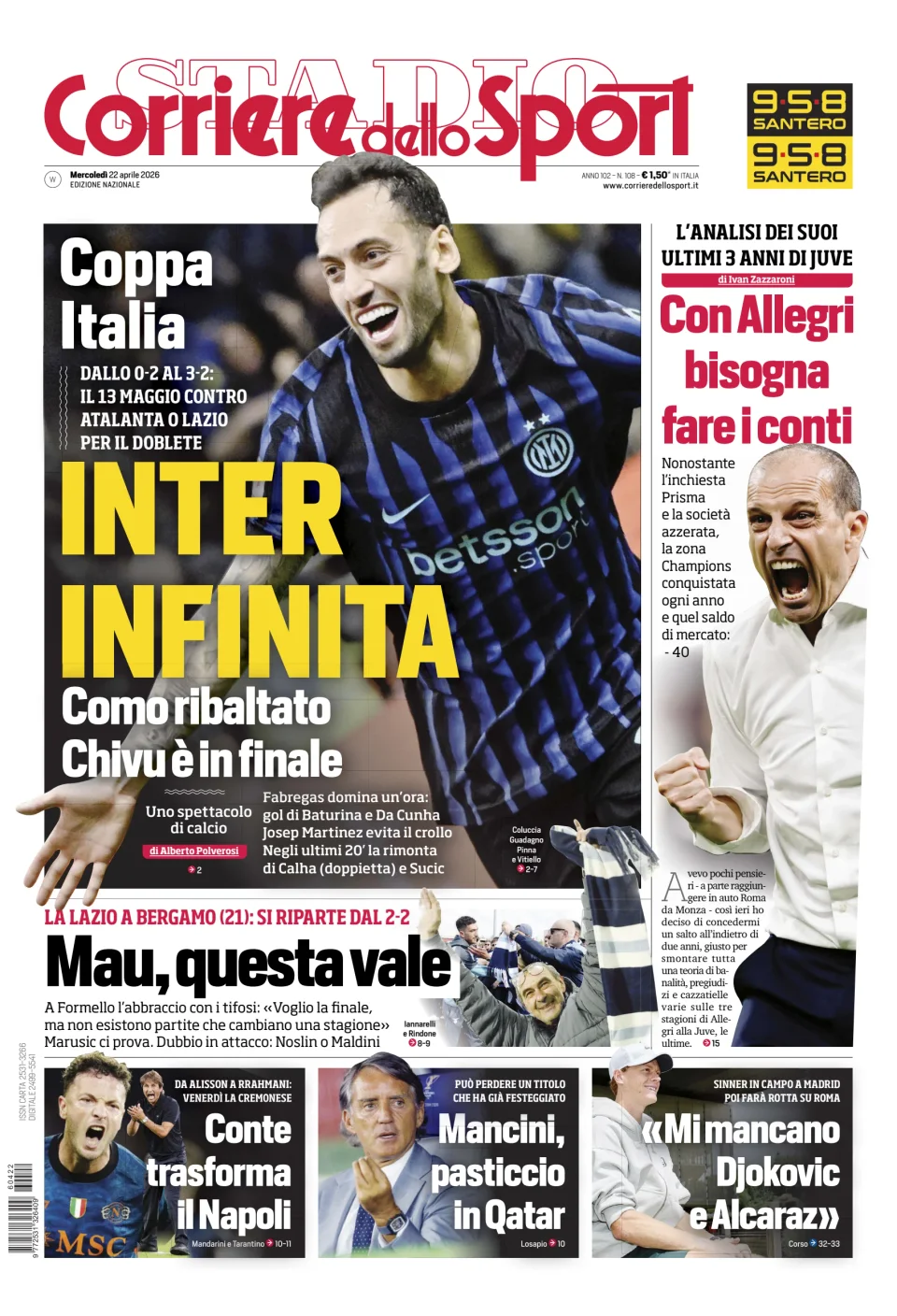 RASSEGNA STAMPA SPORTIVA - Prime pagine dei quotidiani del 22 aprile 2026