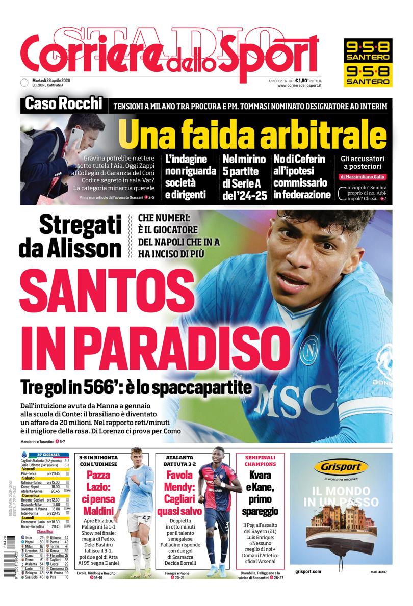 Qui di seguito vi riportiamo la prima pagina dell'edizione Campania del quotidiano 'Il Corriere dello Sport' che troverete in edicola il giorno 28 aprile 2026.