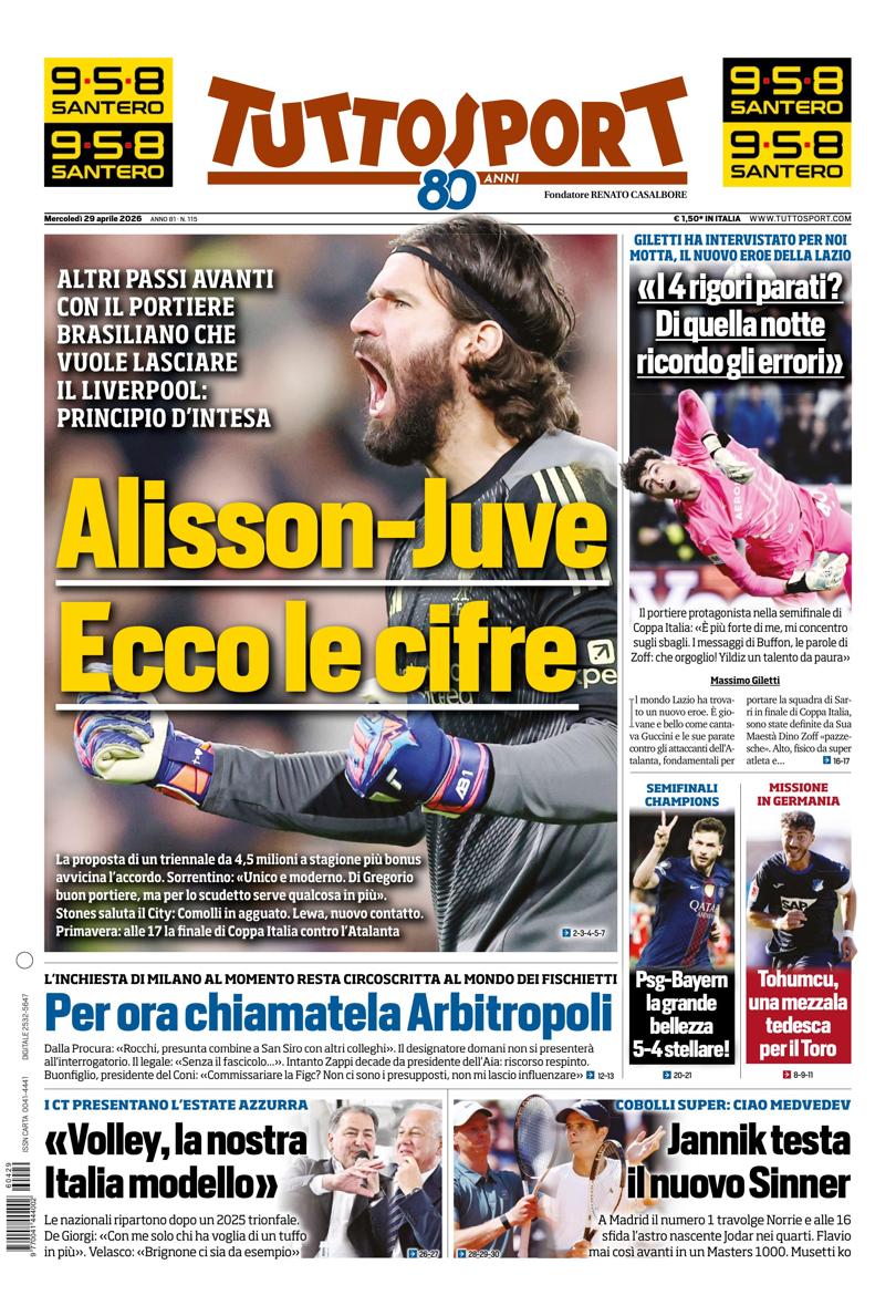 Di seguito potete trovare le prime pagine dei tre quotidiani sportivi, relativamente alle edizioni Nazionali in edicola il giorno 29 aprile 2026.