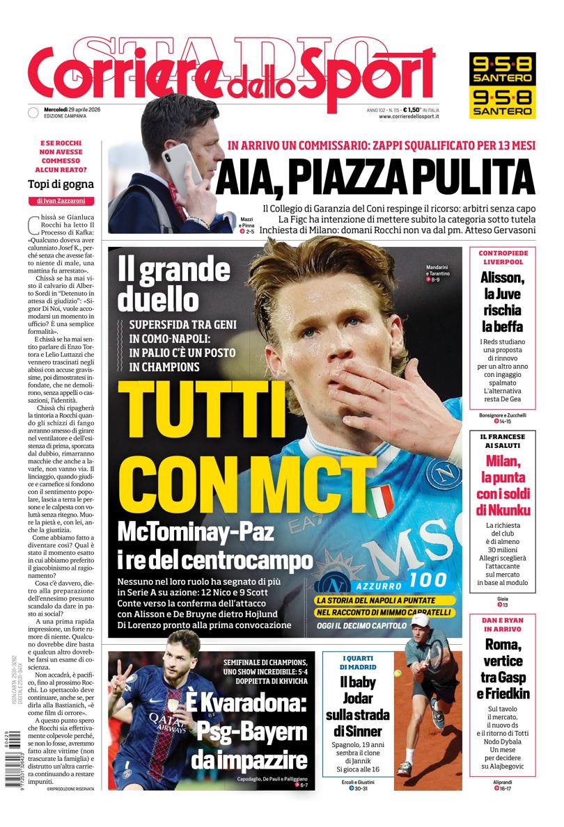 Qui di seguito vi riportiamo la prima pagina dell'edizione Campania del quotidiano 'Il Corriere dello Sport' che troverete in edicola il giorno 29 aprile 2026.