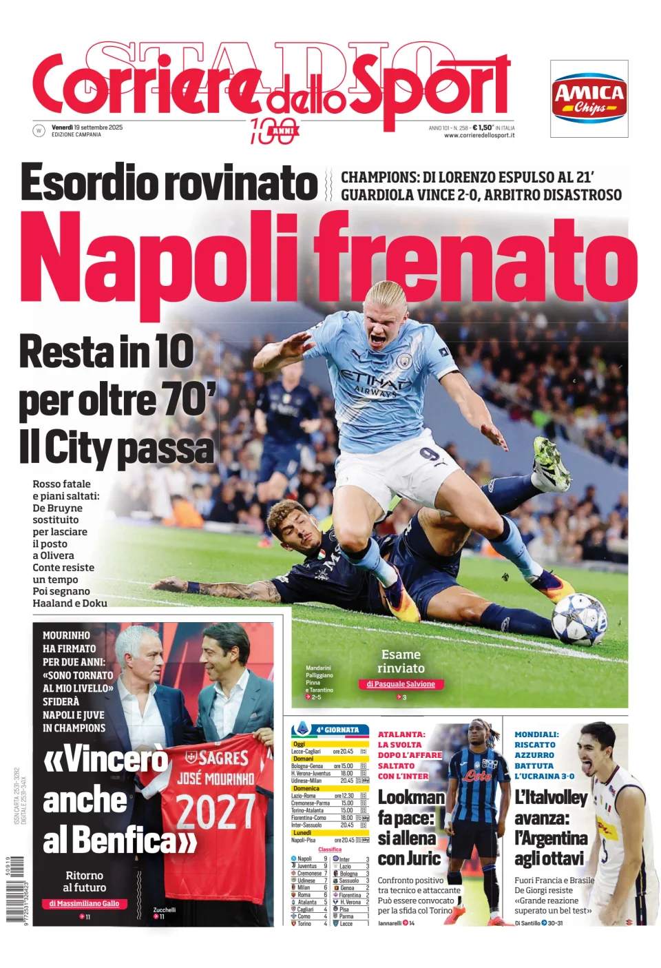 Qui di seguito vi riportiamo la prima pagina dell'edizione Campania del quotidiano 'Il Corriere dello Sport' che troverete in edicola il giorno 19 settembre 2025.