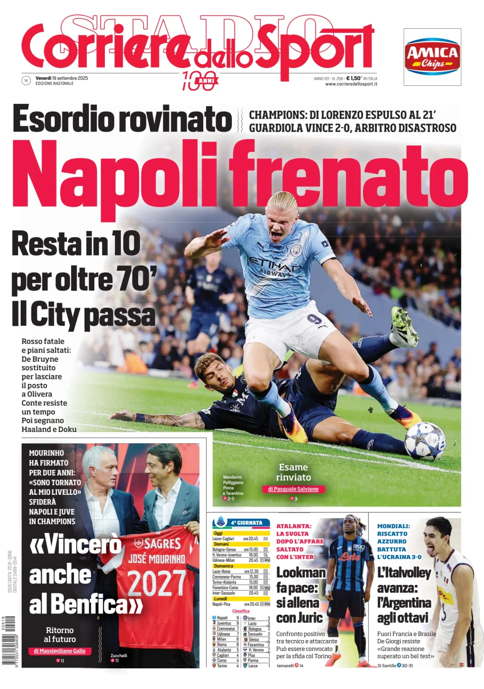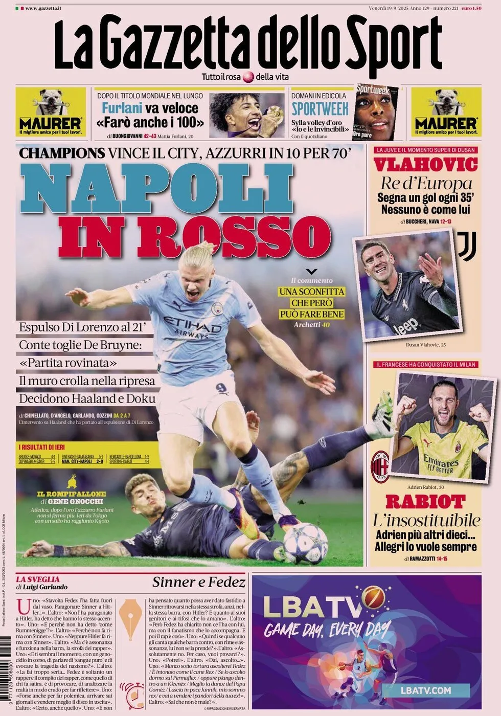 Di seguito potete trovare le prime pagine dei tre quotidiani sportivi, relativamente alle edizioni Nazionali in edicola il giorno 19 settembre 2025.