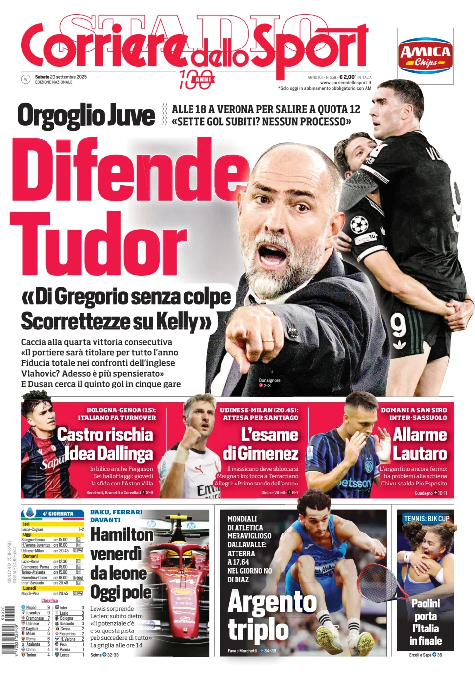 RASSEGNA STAMPA SPORTIVA - Prime pagine dei quotidiani del 20 settembre 2025