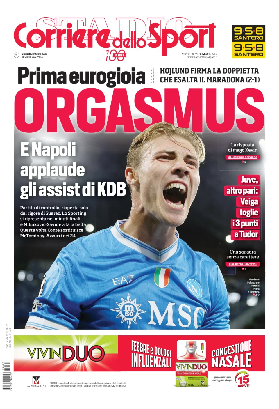 Qui di seguito vi riportiamo la prima pagina dell'edizione Campania del quotidiano 'Il Corriere dello Sport' che troverete in edicola il giorno 2 ottobre 2025.