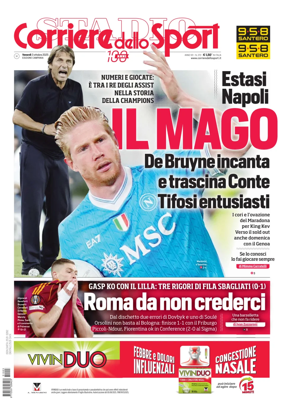 Qui di seguito vi riportiamo la prima pagina dell'edizione Campania del quotidiano 'Il Corriere dello Sport' che troverete in edicola il giorno 3 ottobre 2025.