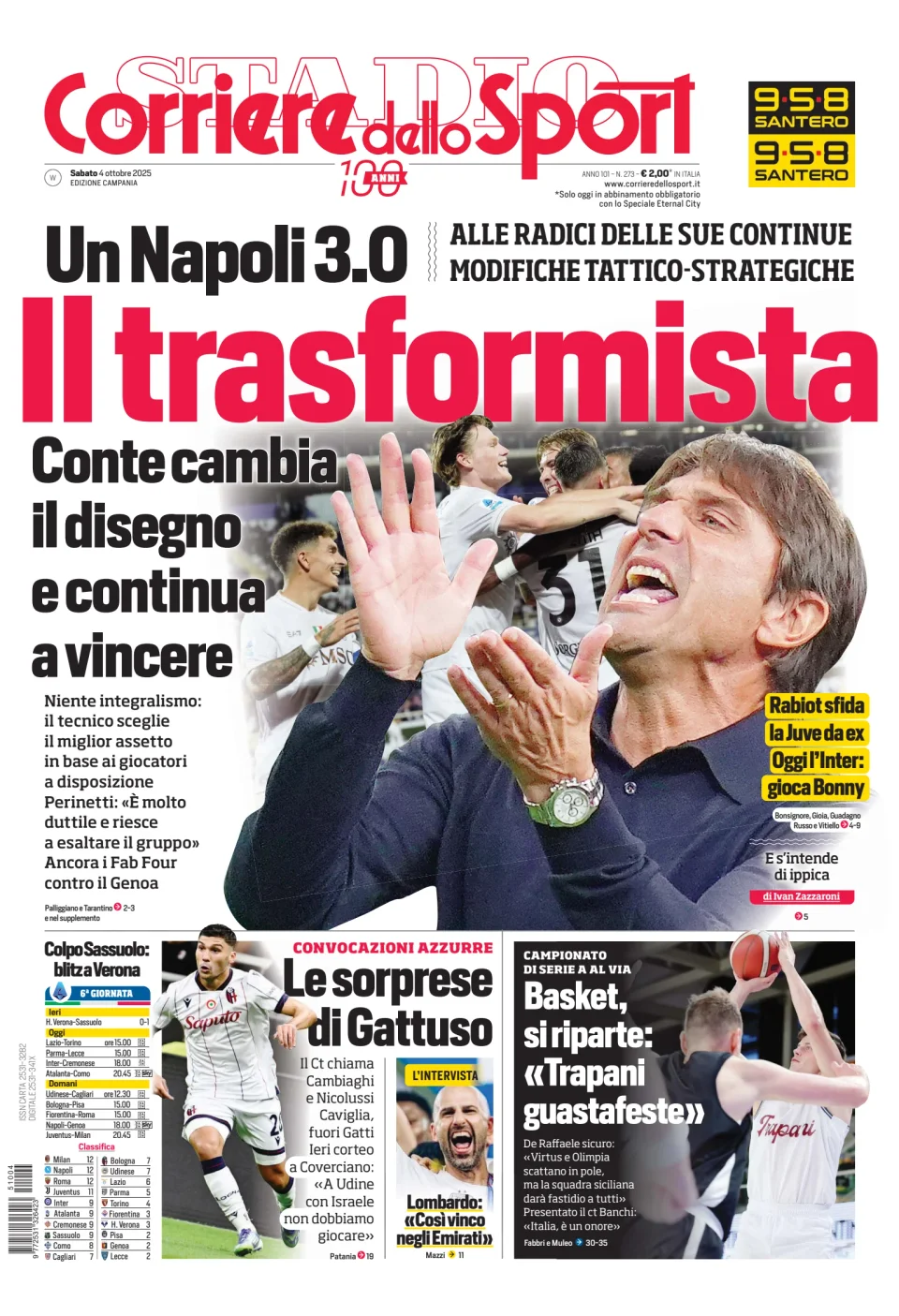 Qui di seguito vi riportiamo la prima pagina dell'edizione Campania del quotidiano 'Il Corriere dello Sport' che troverete in edicola il giorno 4 ottobre 2025.