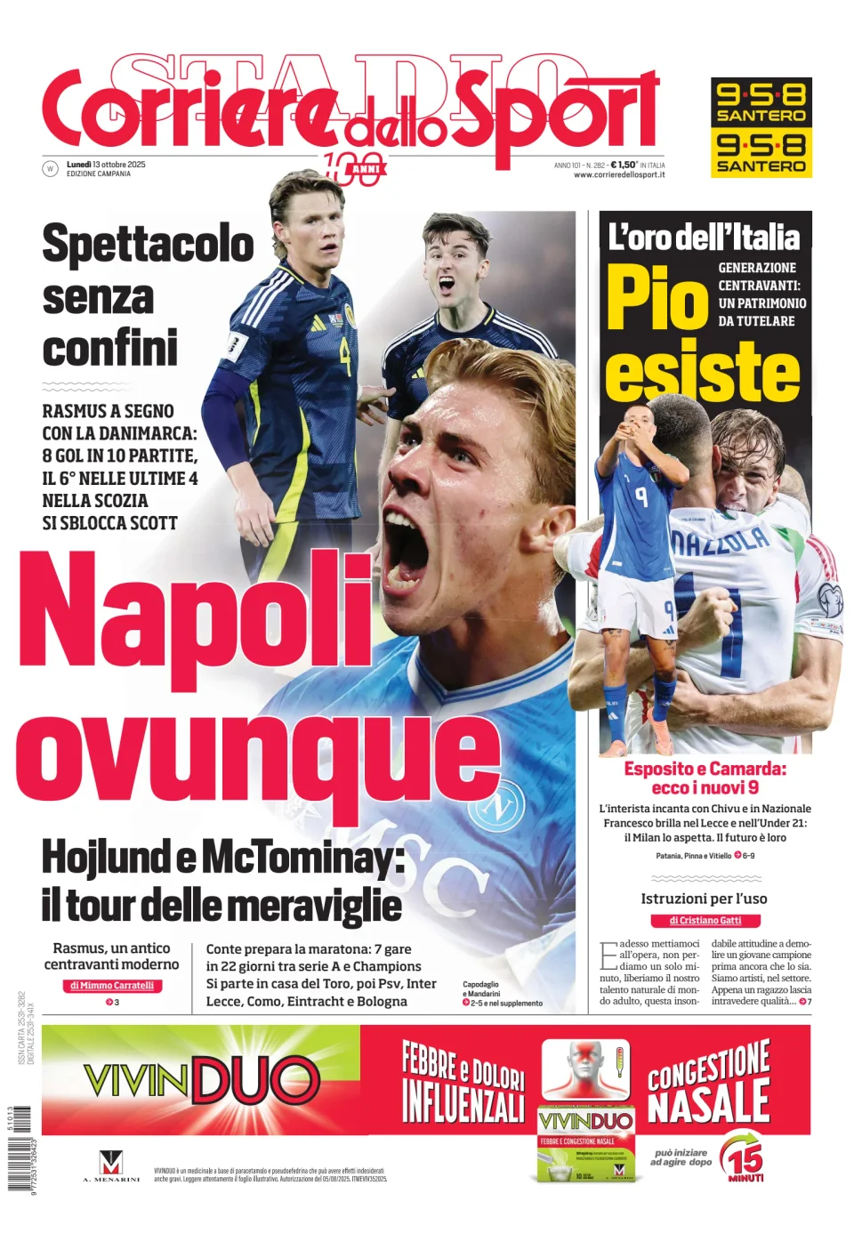 Qui di seguito vi riportiamo la prima pagina dell'edizione Campania del quotidiano 'Il Corriere dello Sport' che troverete in edicola il giorno 13 ottobre 2025.