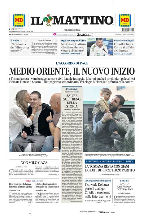RASSEGNA STAMPA, prima pagina de 'Il Mattino' del 14 ottobre 2025
