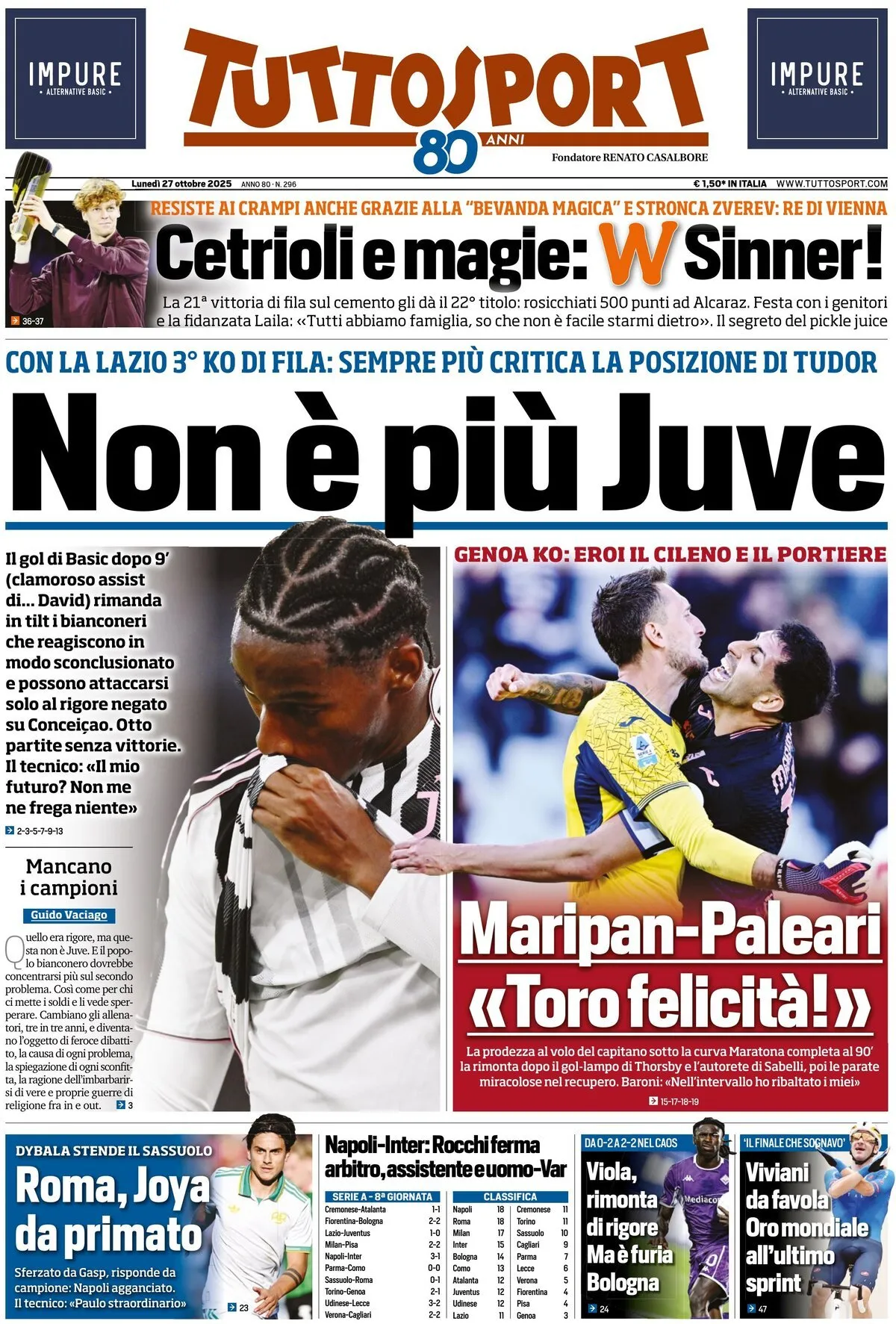 Di seguito potete trovare le prime pagine dei tre quotidiani sportivi, relativamente alle edizioni Nazionali in edicola il giorno 27 ottobre 2025.