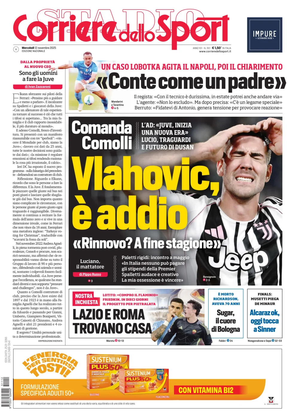 Di seguito potete trovare le prime pagine dei tre quotidiani sportivi, relativamente alle edizioni Nazionali in edicola il giorno 12 novembre 2025.