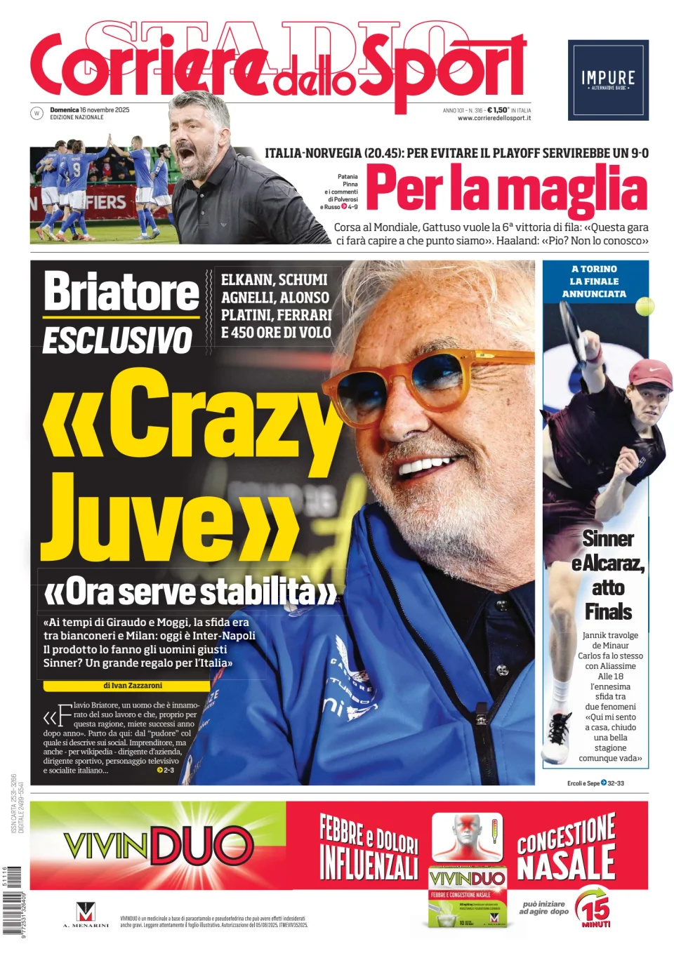 RASSEGNA STAMPA SPORTIVA - Prime pagine dei quotidiani del 16 novembre 2025