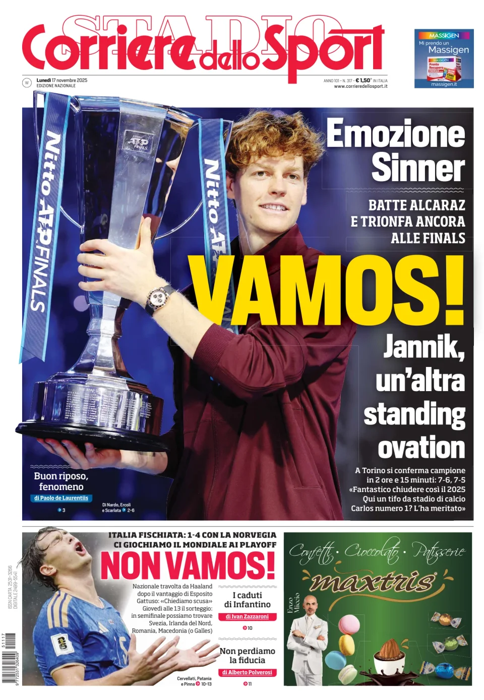RASSEGNA STAMPA SPORTIVA - Prime pagine dei quotidiani del 17 novembre 2025