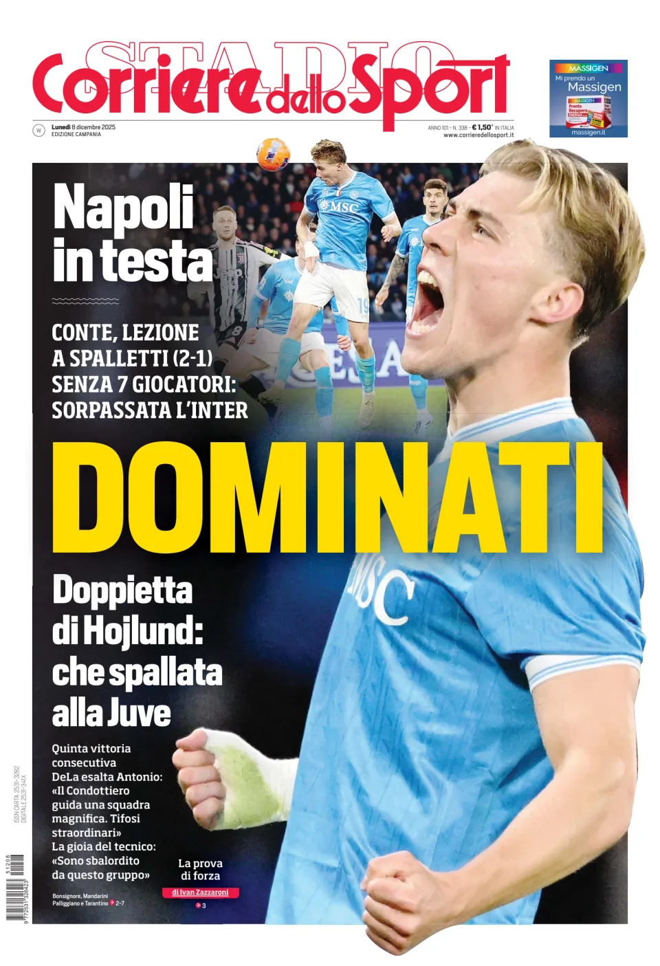 Qui di seguito vi riportiamo la prima pagina dell'edizione Campania del quotidiano 'Il Corriere dello Sport' che troverete in edicola il giorno 8 dicembre 2025.