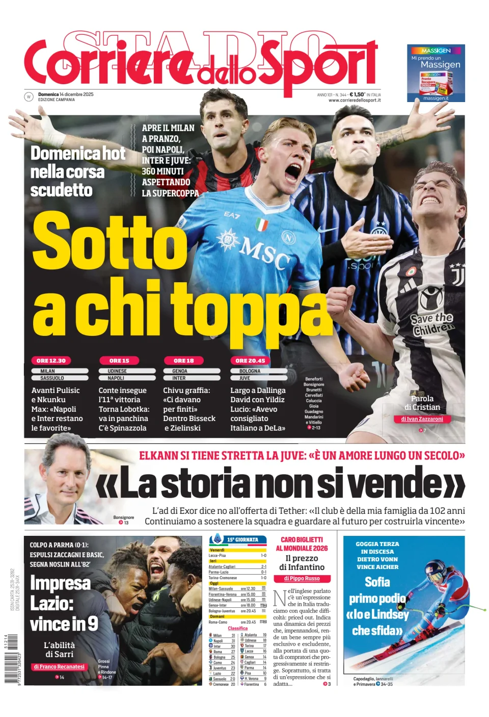 Qui di seguito vi riportiamo la prima pagina dell'edizione Campania del quotidiano 'Il Corriere dello Sport' che troverete in edicola il giorno 14 dicembre 2025.