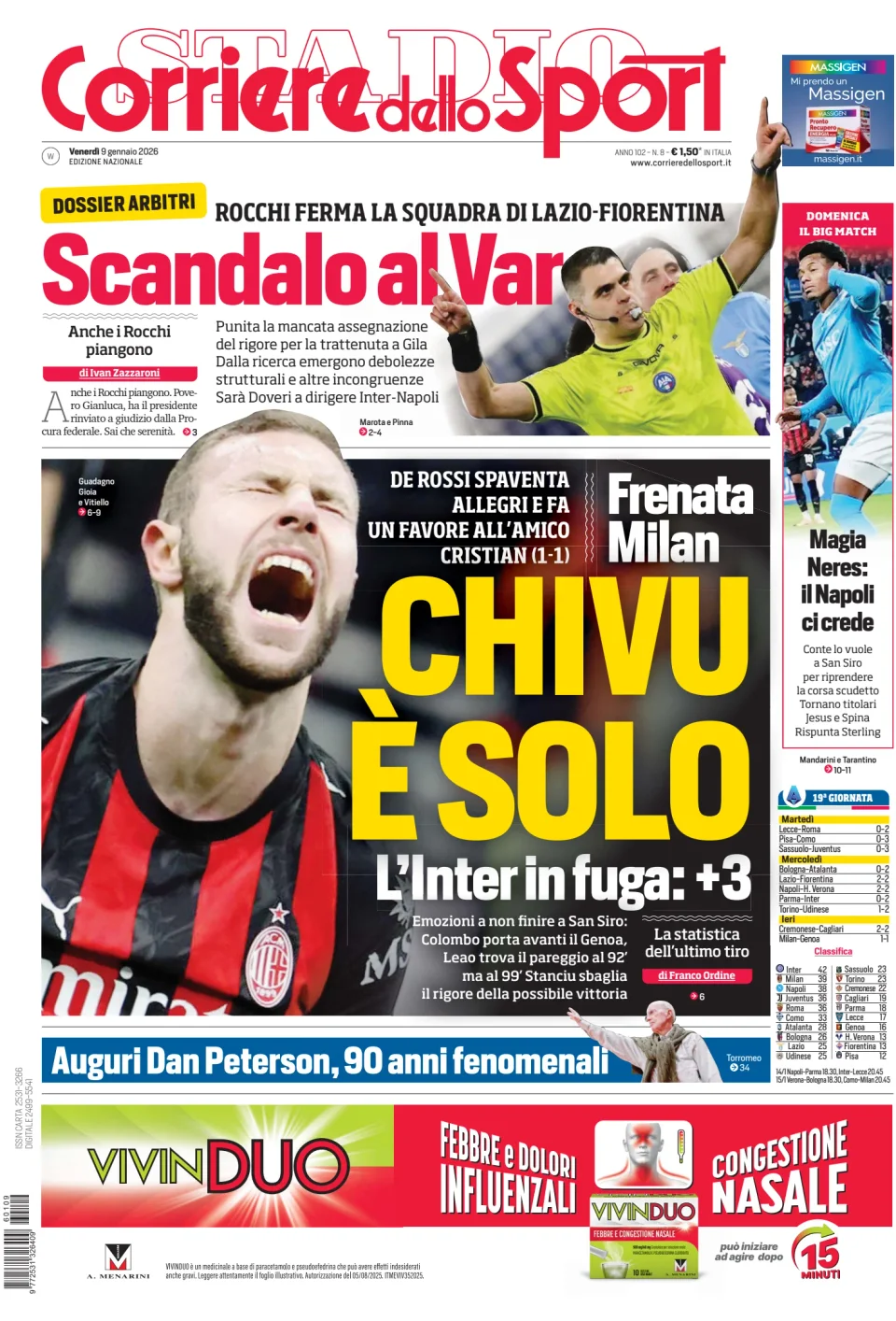 Di seguito potete trovare le prime pagine dei tre quotidiani sportivi, relativamente alle edizioni Nazionali in edicola il giorno 9 gennaio 2026.