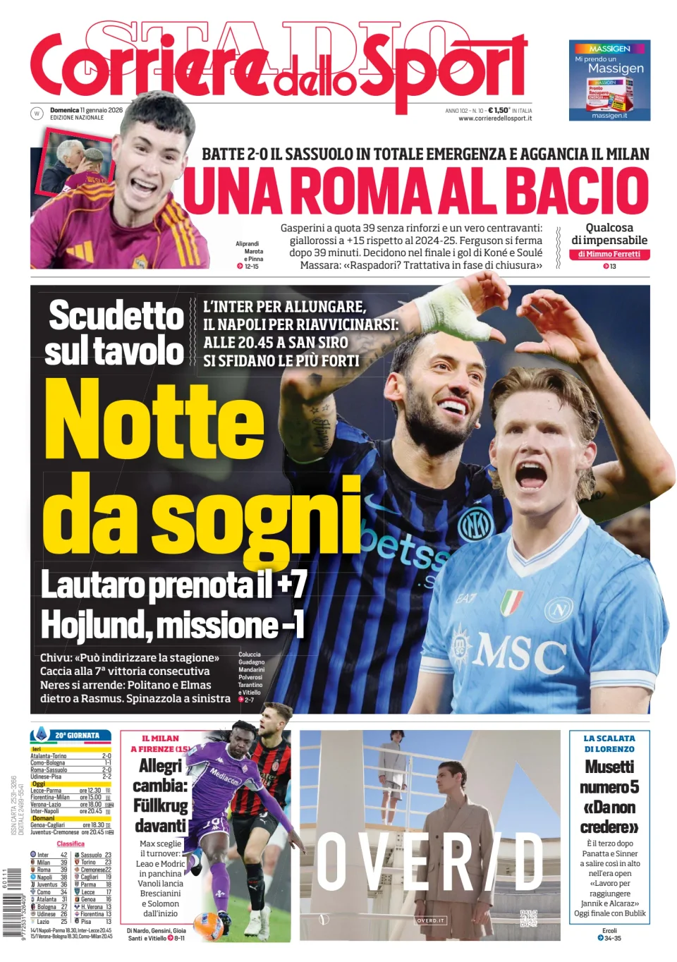Di seguito potete trovare le prime pagine dei tre quotidiani sportivi, relativamente alle edizioni Nazionali in edicola il giorno 11 gennaio 2026.