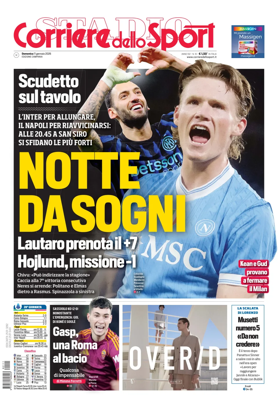 Qui di seguito vi riportiamo la prima pagina dell'edizione Campania del quotidiano 'Il Corriere dello Sport' che troverete in edicola il giorno 11 gennaio 2026.
