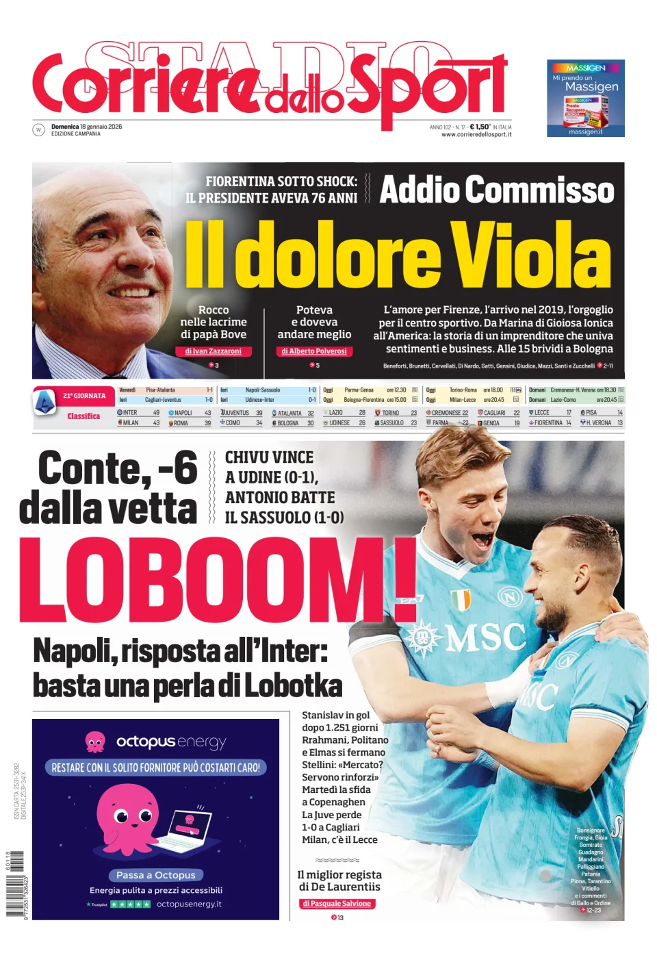 Qui di seguito vi riportiamo la prima pagina dell'edizione Campania del quotidiano 'Il Corriere dello Sport' che troverete in edicola il giorno 18 gennaio 2026.