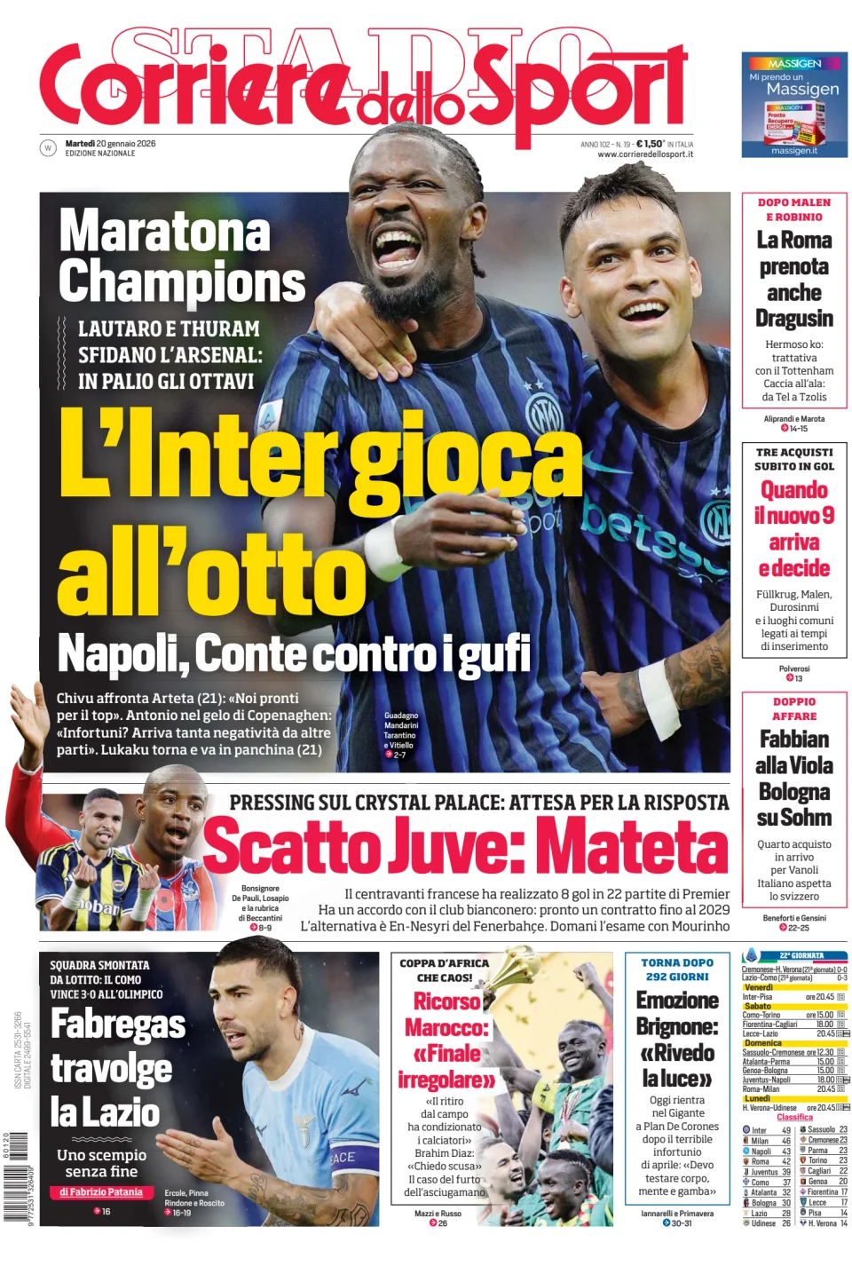 Di seguito potete trovare le prime pagine dei tre quotidiani sportivi, relativamente alle edizioni Nazionali in edicola il giorno 20 gennaio 2026.