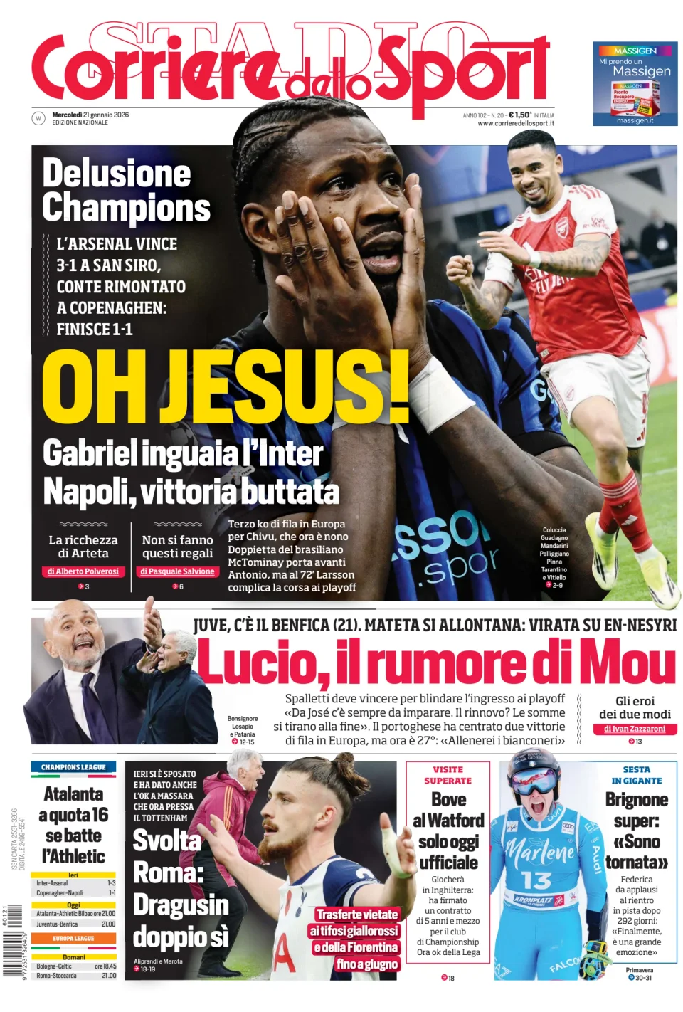 Di seguito potete trovare le prime pagine dei tre quotidiani sportivi, relativamente alle edizioni Nazionali in edicola il giorno 21 gennaio 2026.