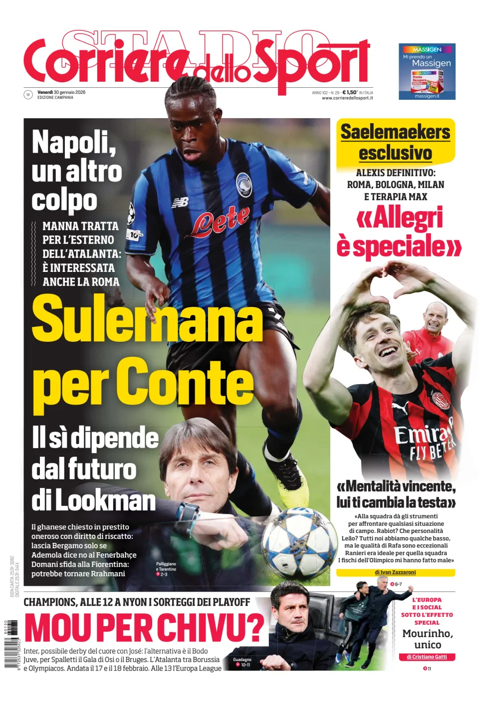 Qui di seguito vi riportiamo la prima pagina dell'edizione Campania del quotidiano 'Il Corriere dello Sport' che troverete in edicola il giorno 30 gennaio 2026.