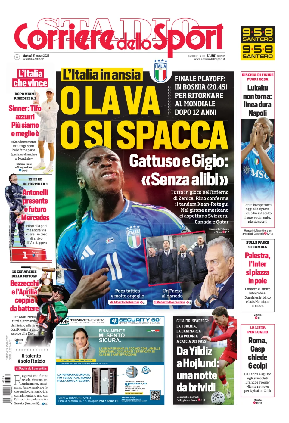 Qui di seguito vi riportiamo la prima pagina dell'edizione Campania del quotidiano 'Il Corriere dello Sport' che troverete in edicola il giorno 31 marzo 2026.