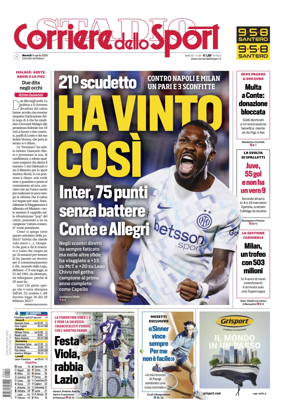 RASSEGNA STAMPA SPORTIVA - Prime pagine dei quotidiani del 14 aprile 2026