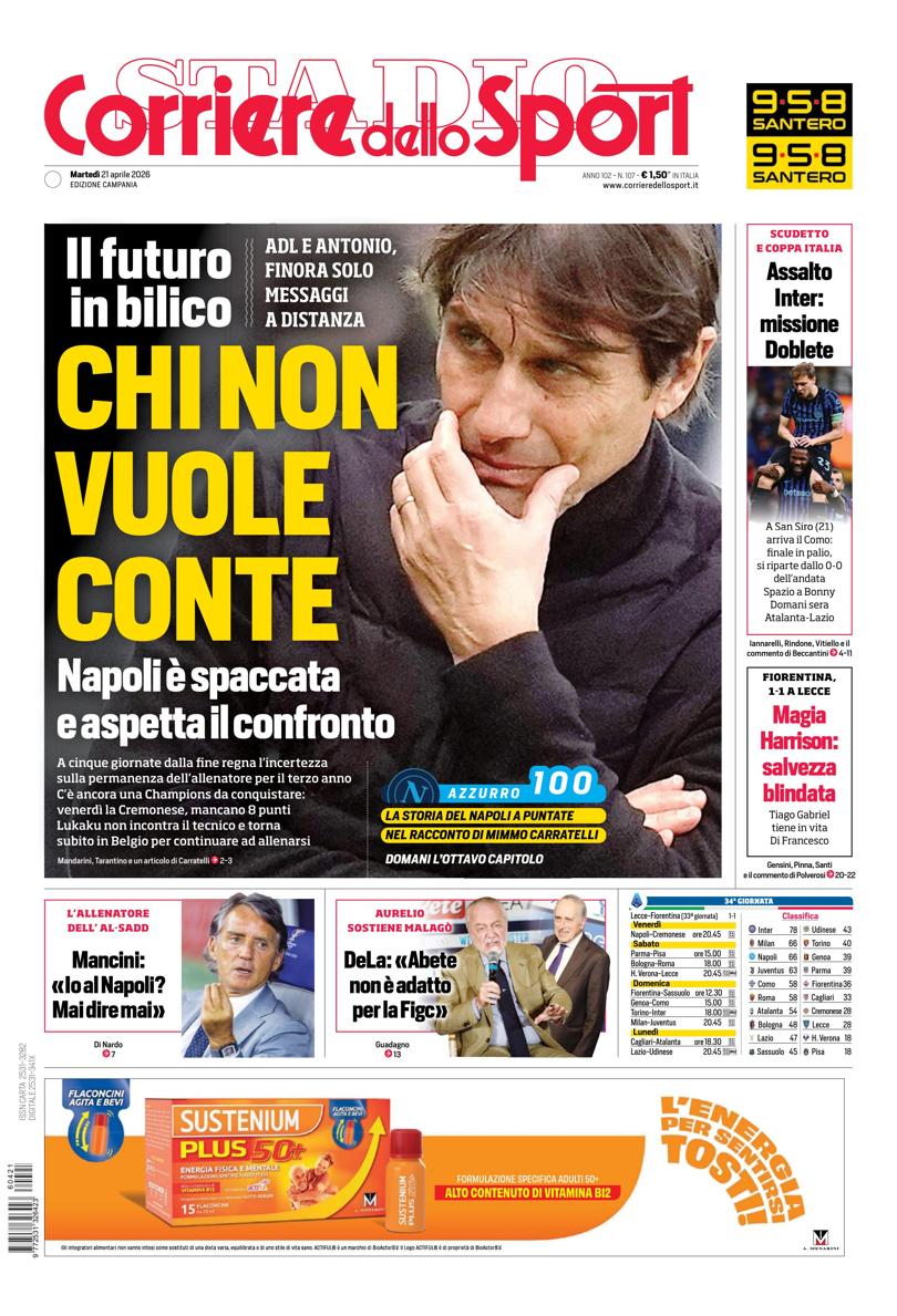 Qui di seguito vi riportiamo la prima pagina dell'edizione Campania del quotidiano 'Il Corriere dello Sport' che troverete in edicola il giorno 21 aprile 2026.